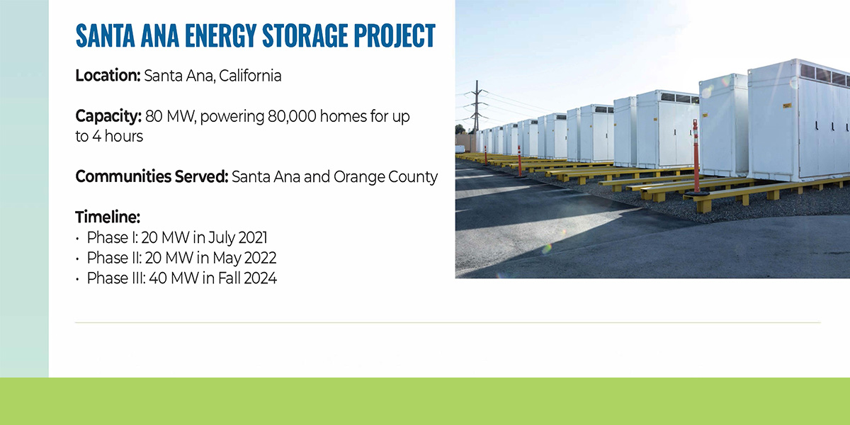 In Santa Ana, California our portfolio includes 3 co-located battery storage facilities – Santa Ana 1, 2 and 3 – with 80 MW of battery storage capacity.